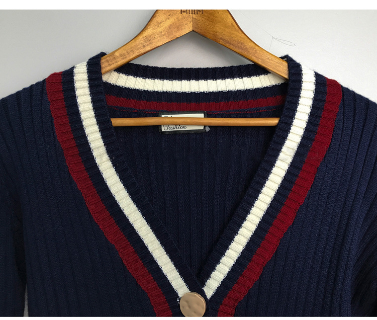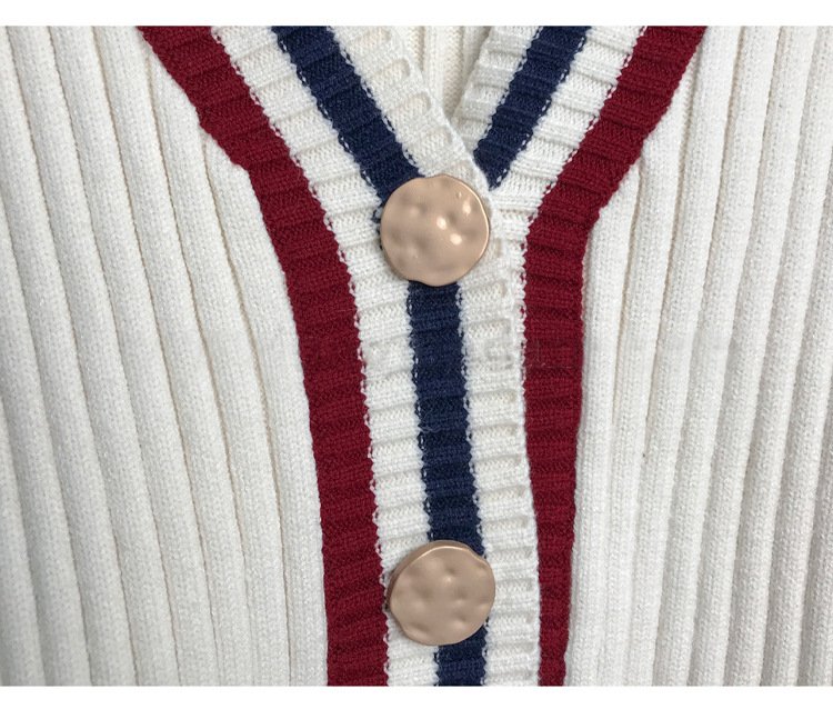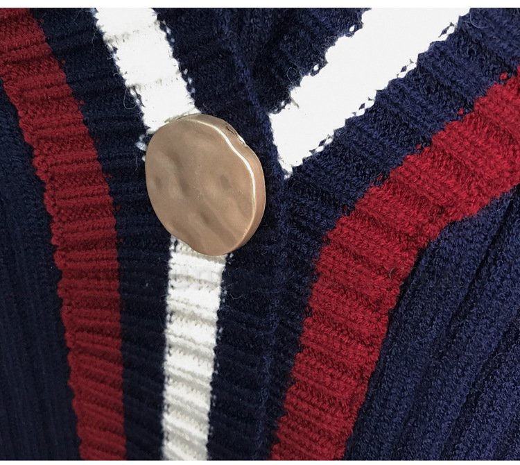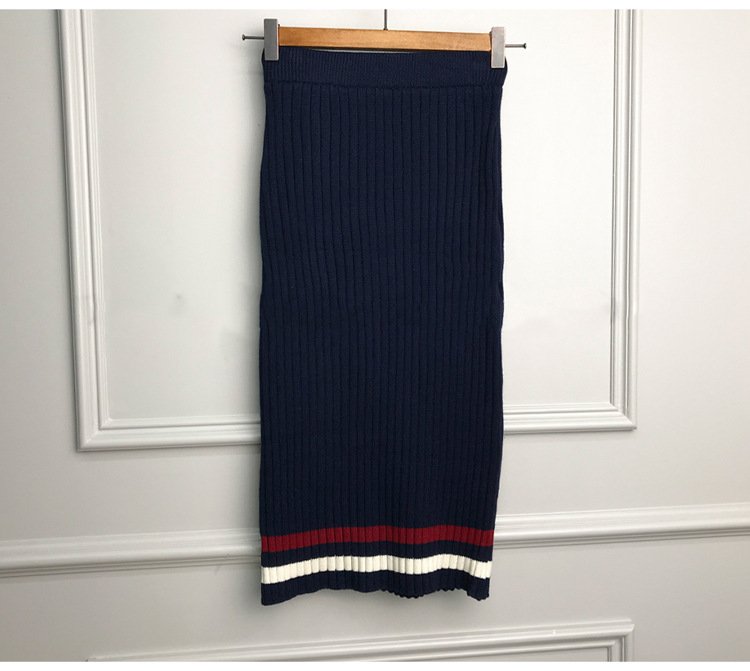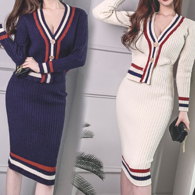 Be the first to review “Contrast Striped V-neck Knit Cardigan Long Sleeve Sweater Wrapped Hip Wool Knit Skirt”